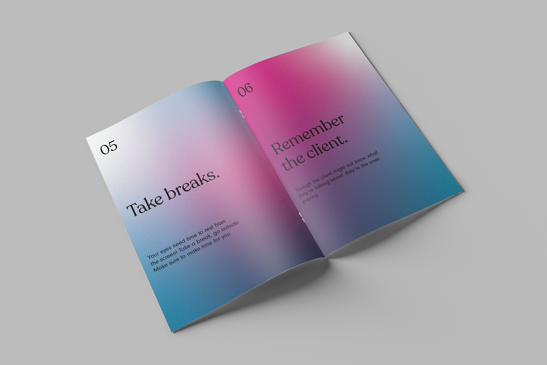 The objective of this project was to create a graphic design manifesto. This pocket-sized book is full of inspiring quotes and tips for graphic designers to carry on the go.